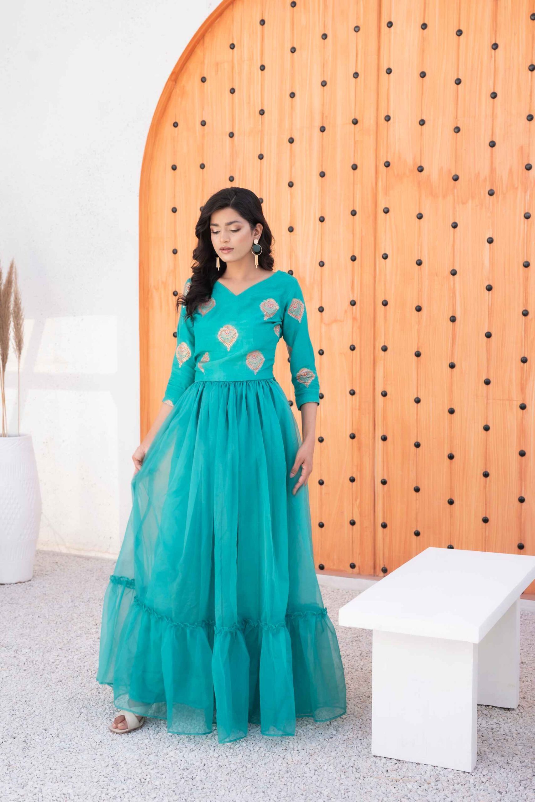 Sale! Crop Top & Skirt₨7,900.00 Original price was: ₨7,900.00.₨6,320.00Current price is: ₨6,320.00. PKR USD Size Choose an optionXSSMLXLXSXSSSMMLLXLXLClear Crop Top & Skirt quantity Add to cart SKU: SLP-07 Categories: Sale Products, Summer Luxury Pret Share this product Description Additional information Reviews (0) Size Chart Description Color: Mint Green Product Description: Top: Block printed crop top made in raw silk Skirt: Paired with an organza skirt for an elegant look Note: The color of this outfit may slightly vary due to photographic lighting effects used in photography. Additional information Size XS, S, M, L, XL Reviews (0) Reviews There are no reviews yet. Be the first to review “Crop Top & Skirt” Cancel replyYou must be logged in to post a review. Size Chart Here is the chart Description DetailsXSSMLXL-INCHESINCHESINCHESINCHESINCHESShoulder13.51414.51515Bust181920.522.524.5BicepHalf 6 , Full 12Half 6.5, Full 13Half 7, Full 14Half 8, Full 18Half 9.5, Full 19Wasit1415.517.51921Hip17.51921.523.524.5Sleeves Length 2222222222Arm HoleHalf 8, Full 16Half 8.5, Full 17Half 9.5, Full 19Half 10.5, Full 21Half 12,Full 24Hem2324252627Belt2832353640Thigh12.51313.51415High Waisted Pant Length4444444444Cigarette Pant Length3737373838.5Salwar Length338738394040Lehenga length4646464646Blouse Length171818.51919Normal Shirt Length3435363838Kurta Length3637383940Trouser Waist2628303438