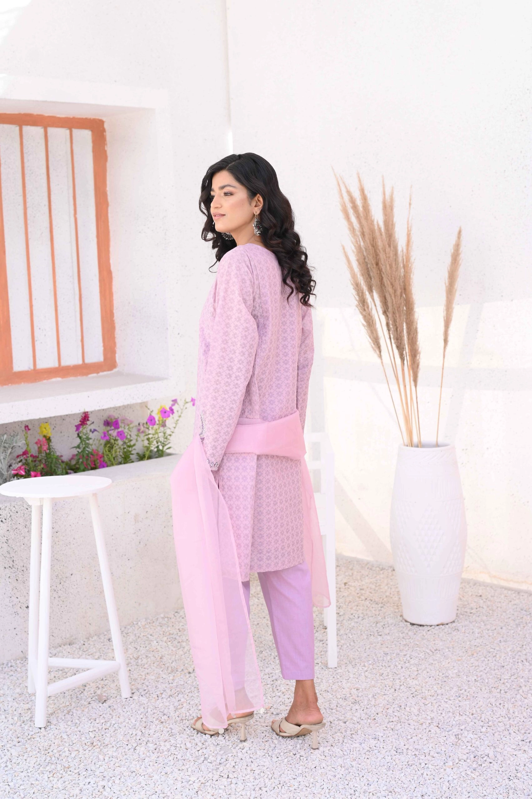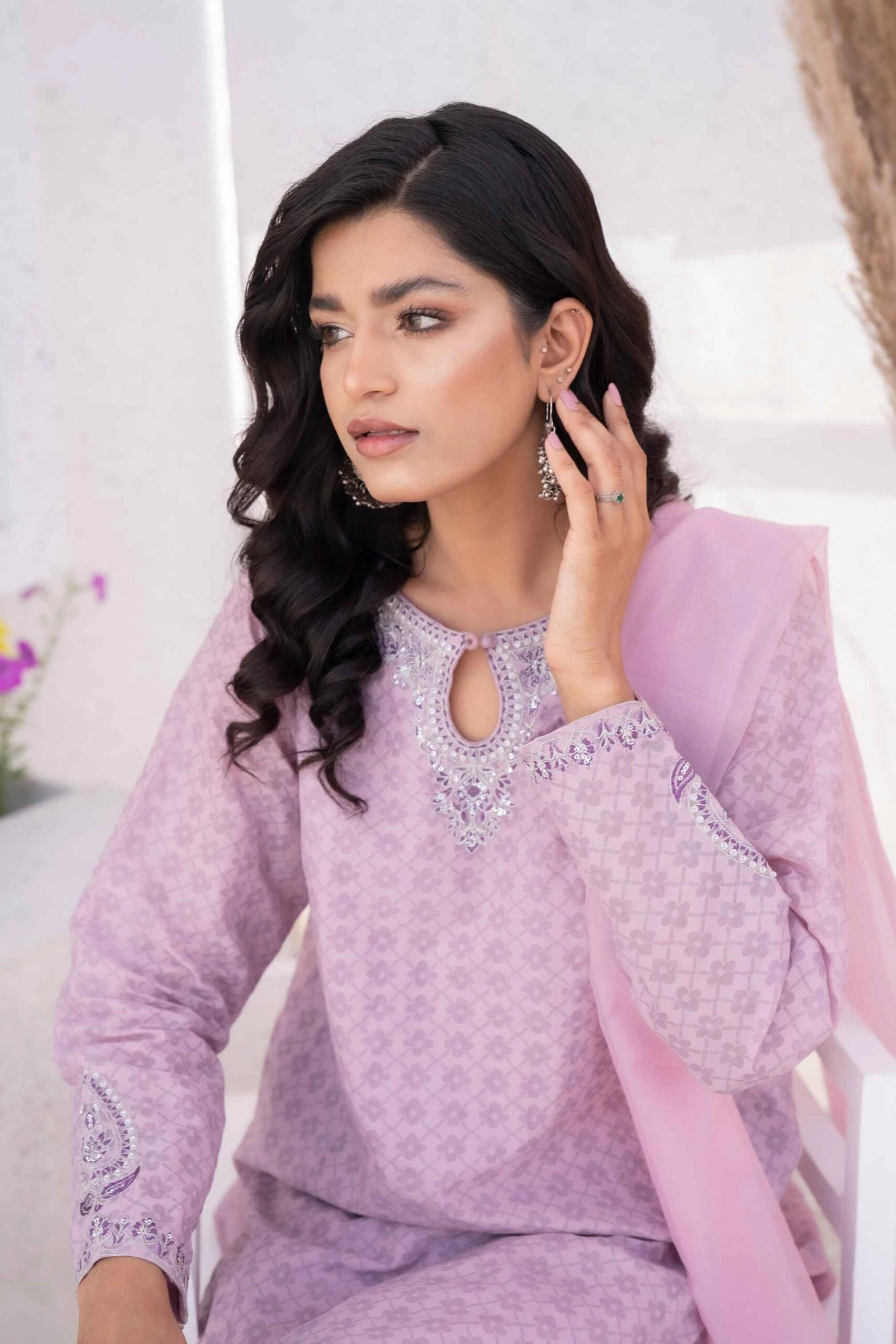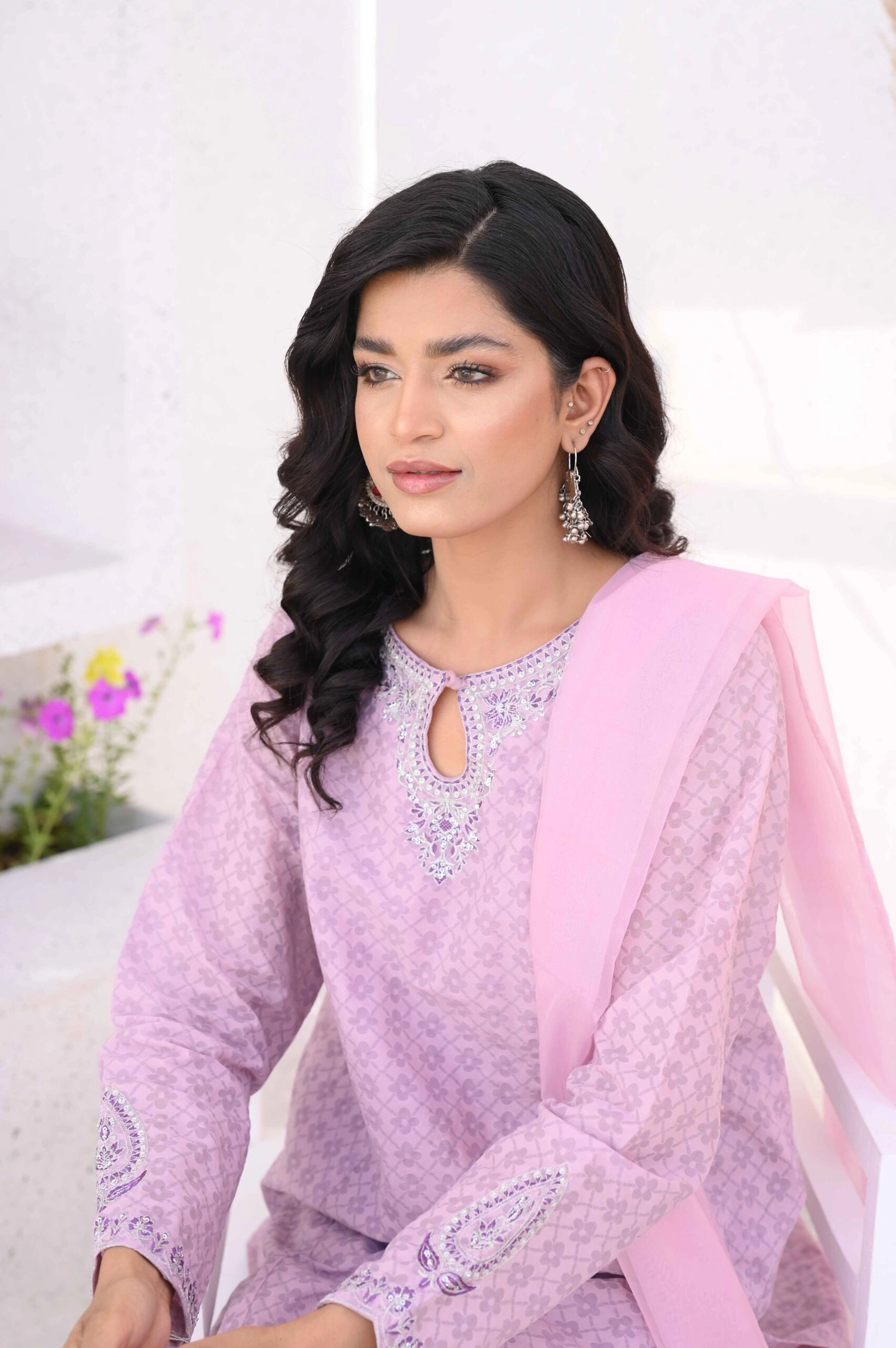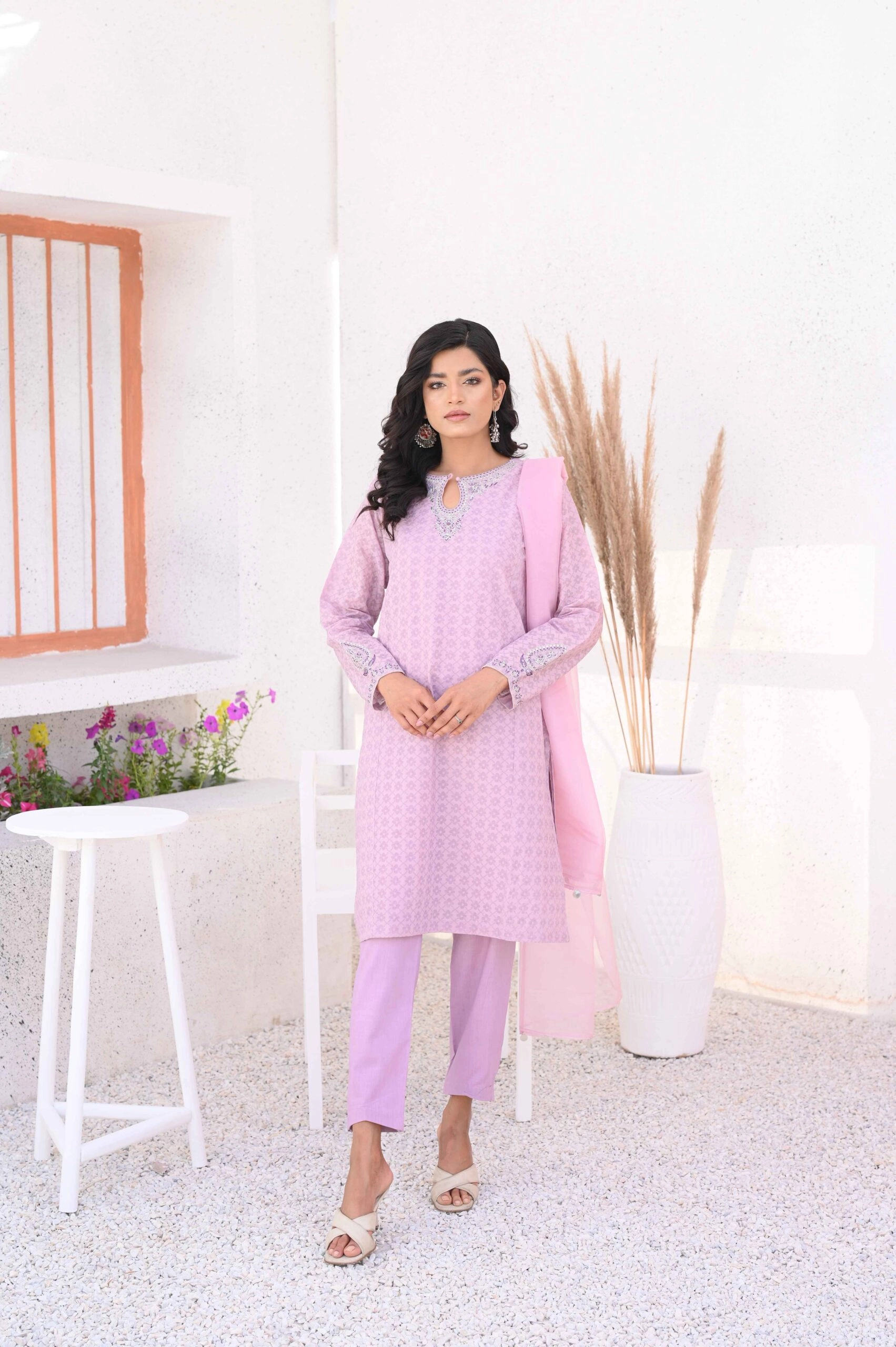 - Included: 3-piece set – straight kameez, capri, and dupatta