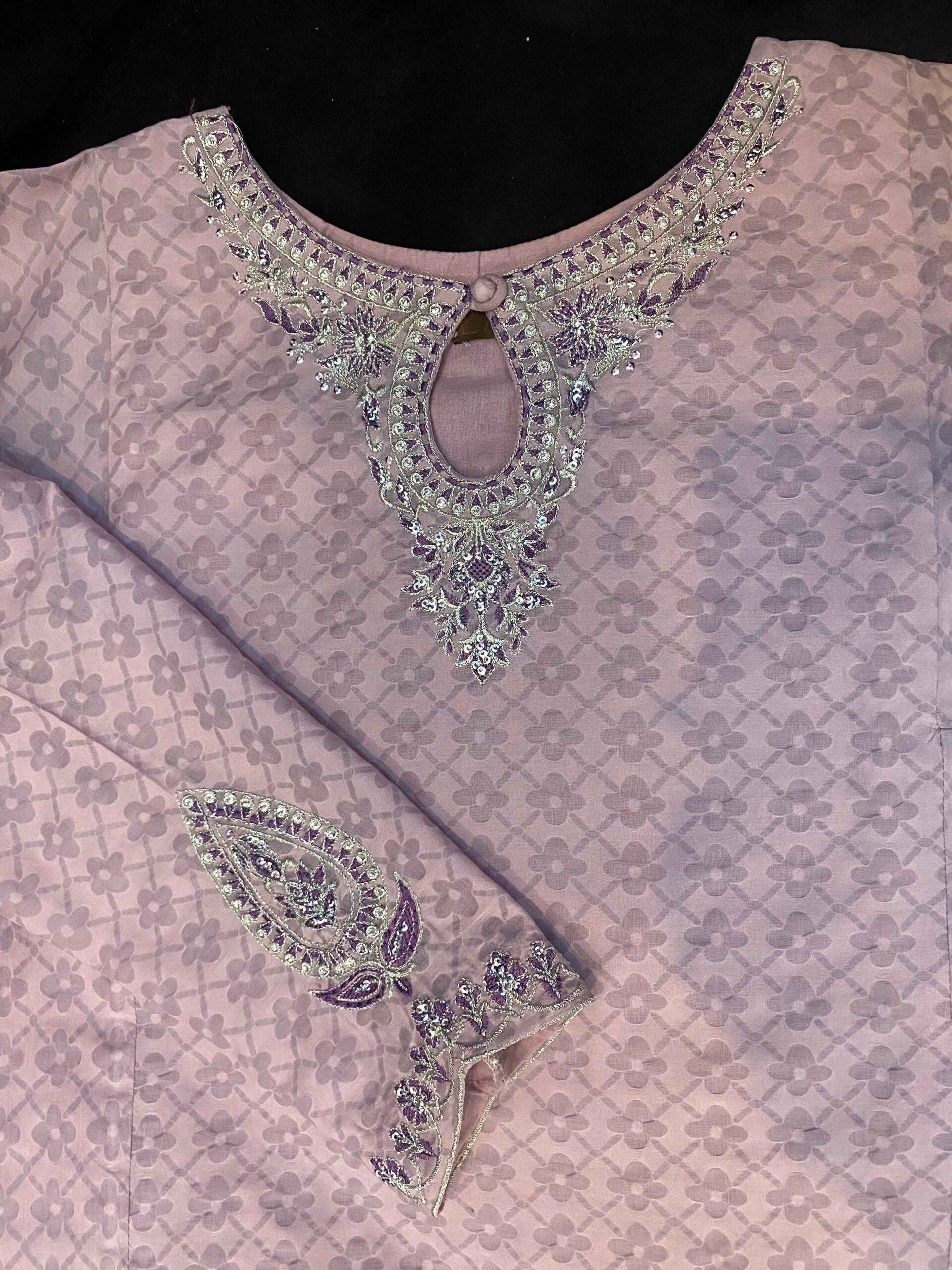 - Embroidery: Embroidered neckline and sleeves