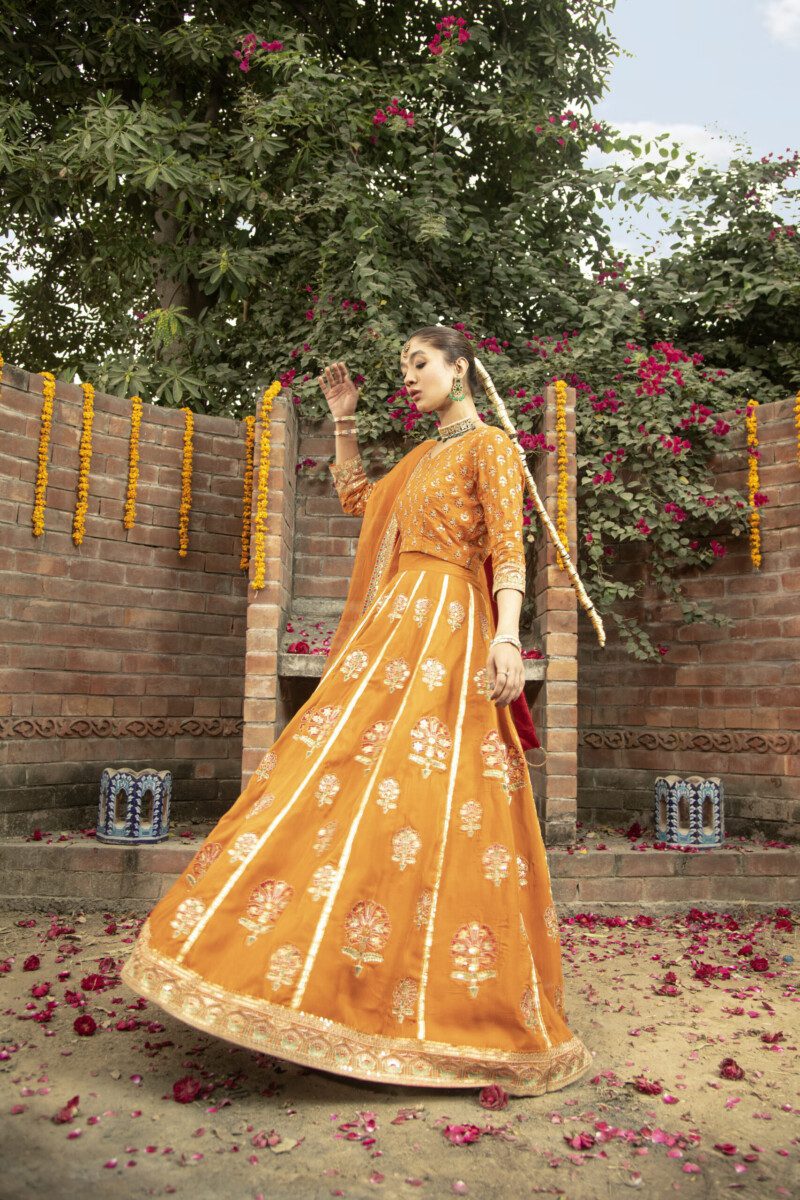 - Lehenga: Raw silk