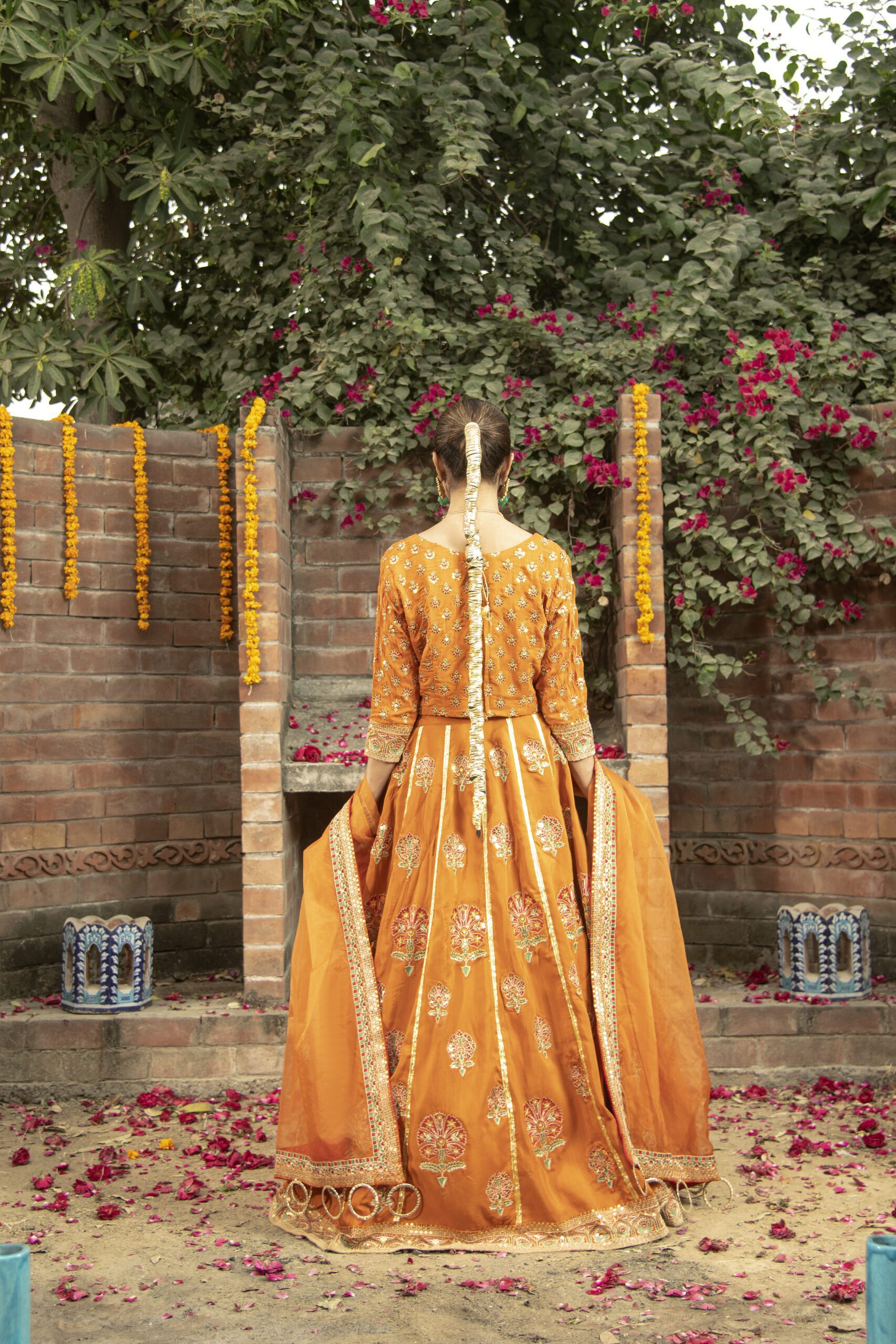 - Lehenga Borders: Embroidered front/back (4.6m)