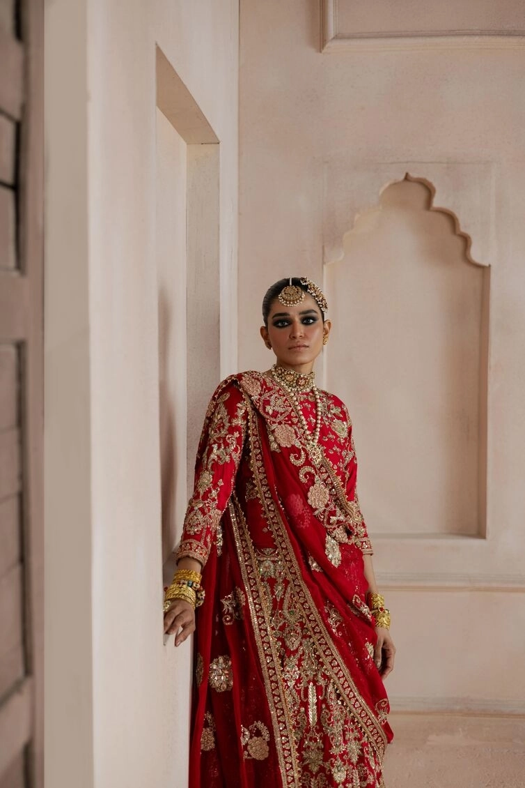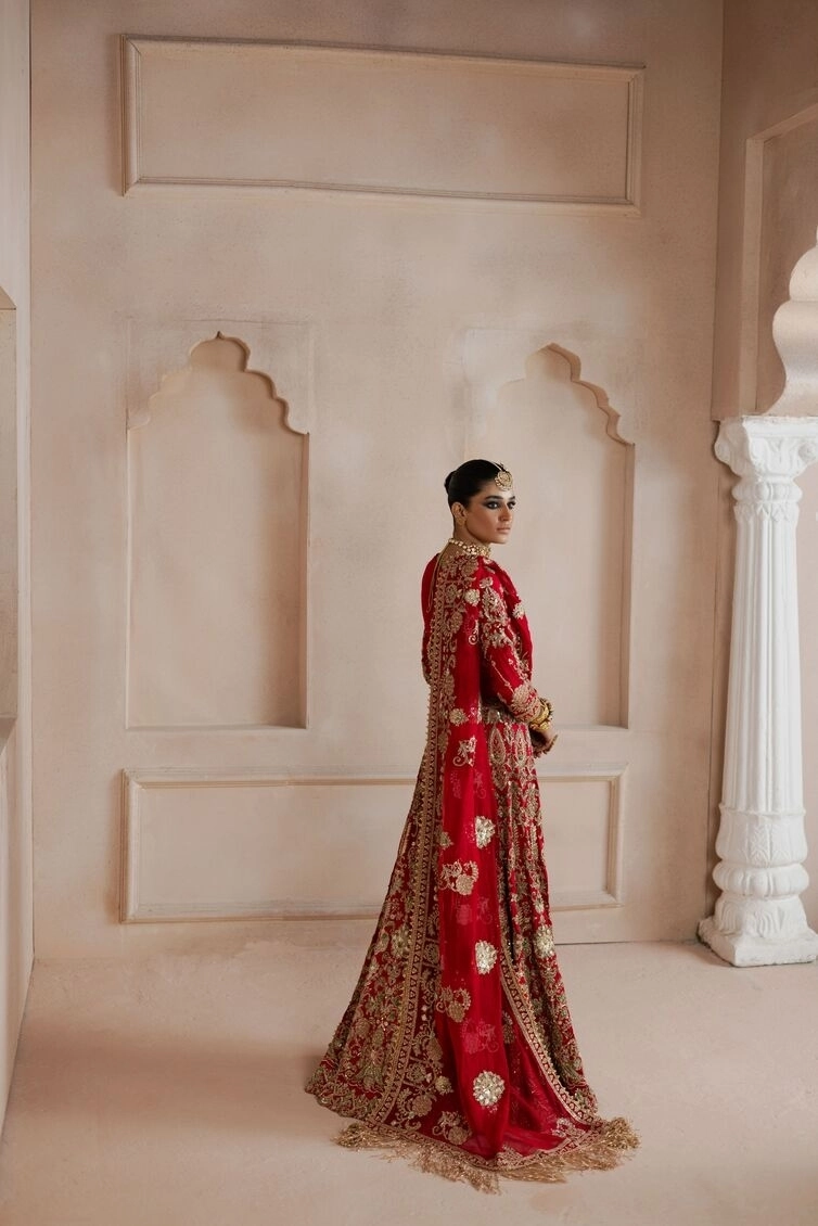 - Dupatta: The dupatta, made from luxurious organza, is fully embellished with intricate floral motifs, giving it a sophisticated and graceful aura. The carefully detailed handwork, including dabka and kora, adds a regal touch, elevating this ensemble to one of pure opulence.